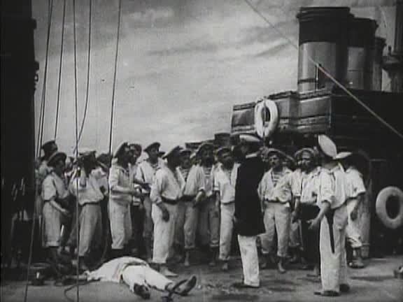 Фильм по горячим следам воссоздает события на броненосце "Потемкин", предваряя на 20 лет появление картины Эйзенштейна.