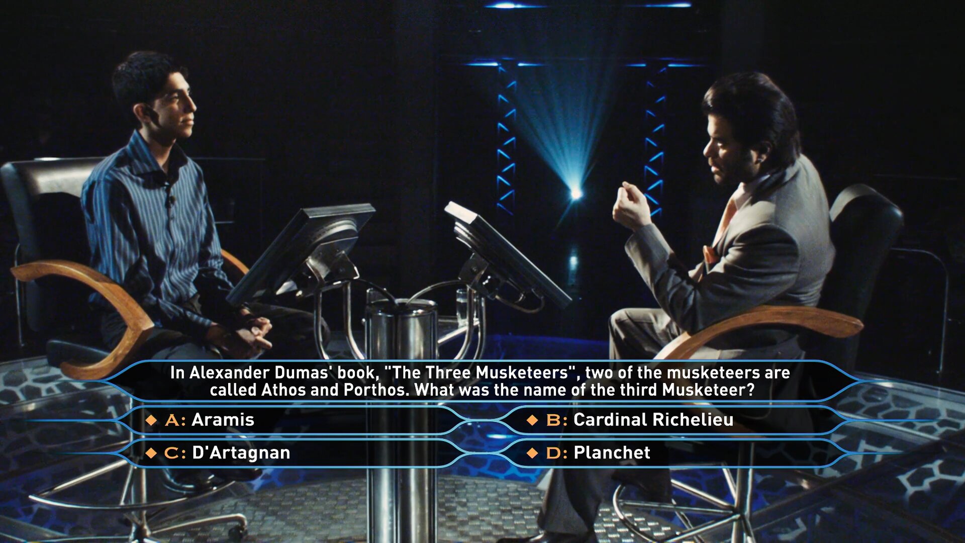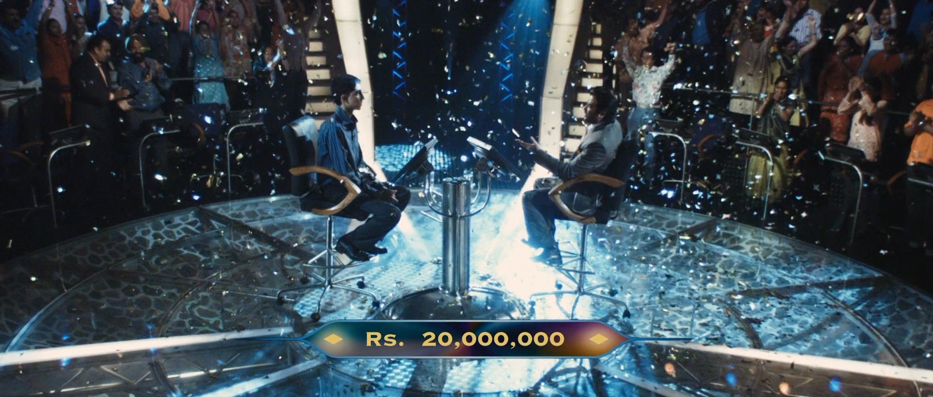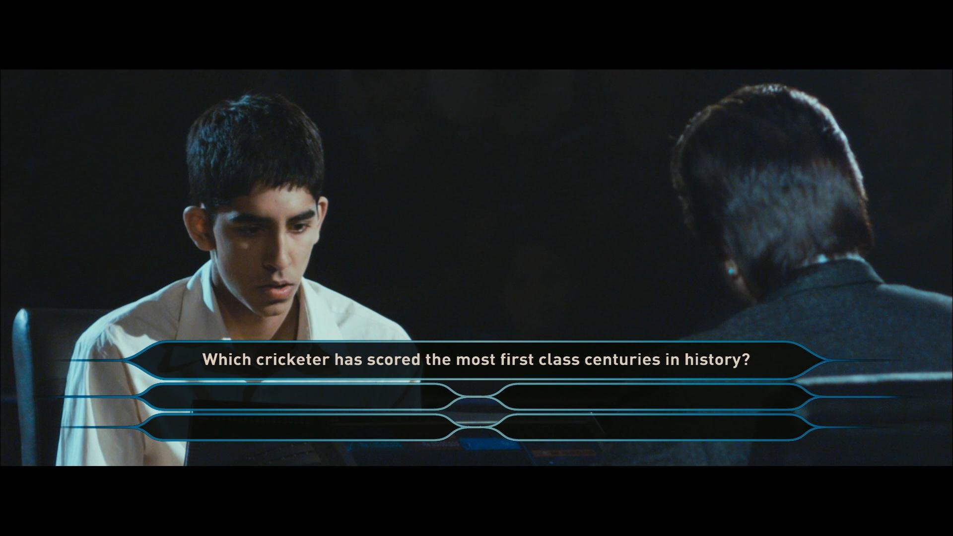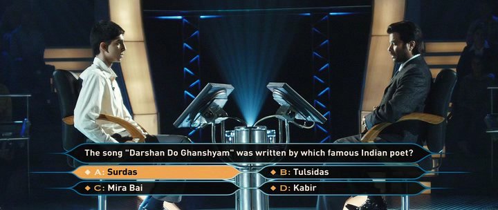 Молодой бедный индийский парень попадает на шоу - викторину " Кто хочет стать миллионером!", и проходит один вопрос за другим. Ему удается выиграть самую большую сумму, хотя он не имеет никакого образования. Все ответы на вопросы ему дала сама жизнь. Вспомнив события, которые происходили с ним с самого детства, он один за другим дает правильные ответы! И только ответить на последний вопрос ему помогает любимая девушка. Публика в шоке! Кто это- гений или мошенник? Так трудно поверить,что это просто совпадение! " ".