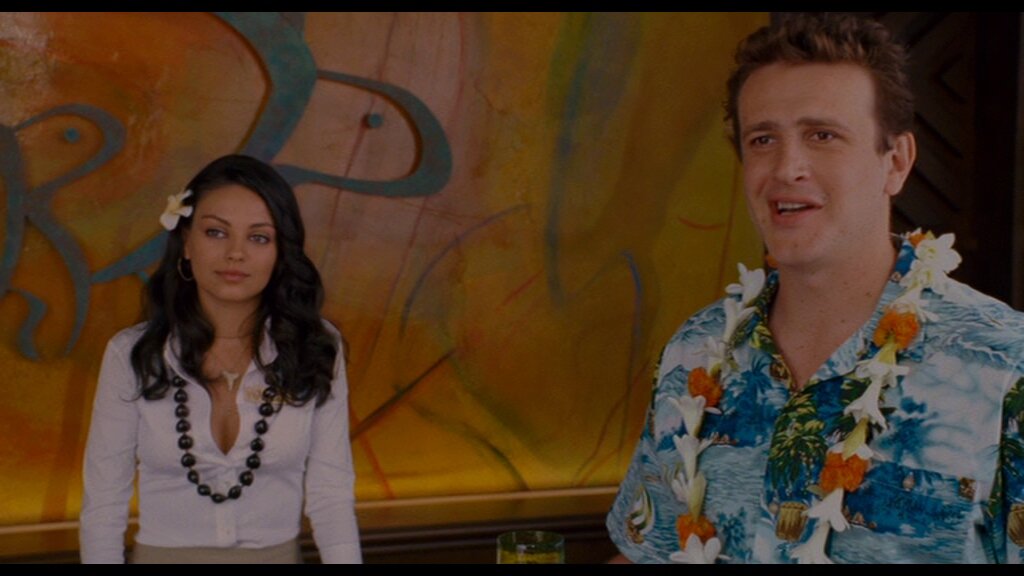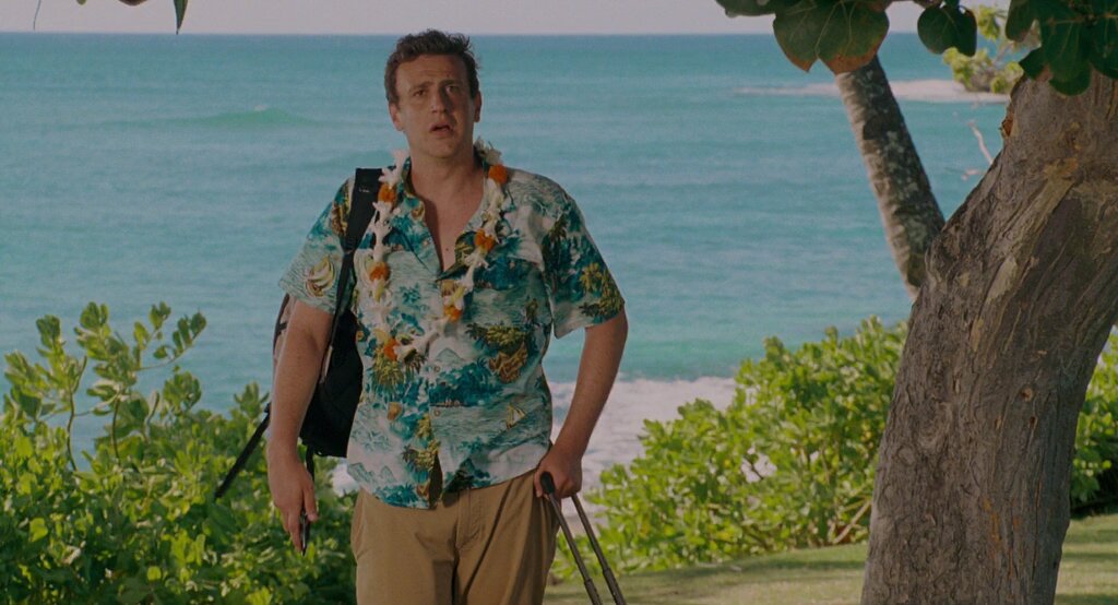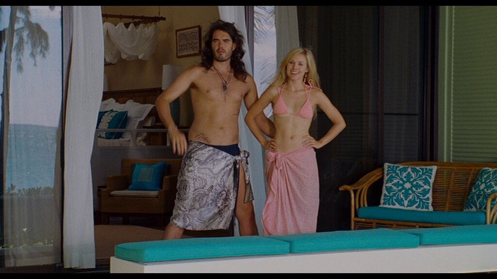 Фильм начинается с того, что неудавшийся музыкант Питер, раздевшись до гола, ждет свою подружку дома. Он в очень хорошем расположении духа, но…когда она приходит, он узнает, что его хотят бросить…Убитый горем, он решает поехать на Гаваи, чтобы хоть немного прийти в себя и развеяться. Но не все так просто, как он предполагал! Когда Питер приходит в гостиницу, он обнаруживает, что на этом же курорте отдыхает его бывшая подружка, та самая, которая совсем недавно, разорвала с ним отношения. Да не одна, а со своим новым бой-френдом! Но Питер решает все же остаться, и основательно разобраться в своем отношении к ней!