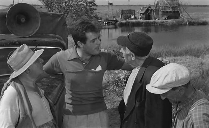 Северино Балестра (Марчелло Мастроянни), разъездной торговец, весёлый мошенник и всеобщий приятель. в очередной раз приезжает на ярмарку в Мильярино, посёлок в болотистой глубинке в устье реки По, где неподалёку четверо стариков, живущих в хижинах у болота, зарабатывают на жизнь тем, чем придётся.. Там же, в посёлке, в деревенской гостинице работает Марина, одинокая девушка, которую Северино безуспешно добивался ещё в прошлом году. Северино без всякого злого умысла, просто так, среди прочих выдумок, рассказывает своим приятелям-старикам про продажу участков на небе. Доверчивые деревенские простаки загораются идеей купить вскладчину гектар и поскорее туда перебраться, чтобы насладиться райской жизнью... Фильм был положительно встречен критикой, которая усмотрела в нём лучшие черты стиля Феллини и в то же время отметила замечательную работу практически начинающего (первый взрослый полнометражный фильм) режиссёра Аглауко Казадио, не только виртуозно балансирующего между реальностью и вымыслом, но и счастливо избежавшего использования модных символических элементов,лишивших бы фильм его простоты и динамичности. Марчелло Мастроянни впоследствии высказывался об особой симпатии именно к этому своему фильму.