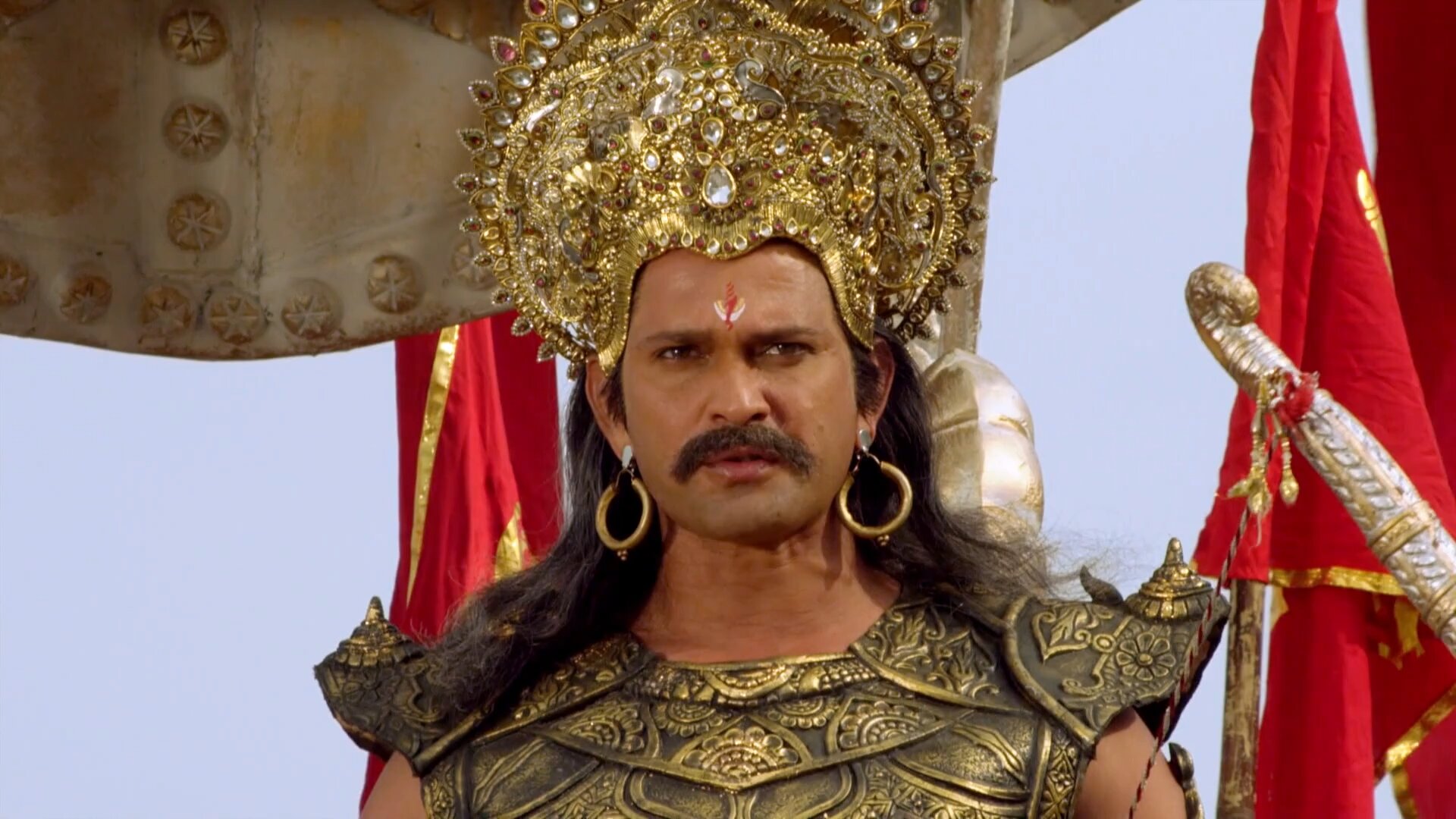 Сериал «Махабхарата» рассказывает о соперничестве двух ветвей династии Куру: это Кауравы, сто сыновей царя Дхритараштры, старшим среди которых был Дурьодхана, и Пандавы — пять двоюродных братьев во главе с Юдхиштхирой. Кауравы воплощают в эпосе темное начало. Пандавы — светлое, божественное. Основную нить сюжета составляет соперничество двоюродных братьев за царство и столицу — город Хастинапур. Царём страны становится старший из Пандавов мудрый и благородный Юдхиштхира. Зависть и злоба Кауравов преследуют Пандавов всю жизнь, но с момента провозглашения Юдхиштхиры царём, они достигают предела. Согласно традиции, каждый из присутствующих на церемонии коронации может вызвать будущего царя на поединок; отказ невозможен, он расценивается как проявление слабости. Кауравы, зная, что Юдхиштхира плохой игрок в кости, вызывают его на поединок, и он проигрывает имущество, царство, братьев, жену и самого себя. По требованию деда Кауравов и Пандавов, мудрого Бхишмы, проигранное возвращается Юдхиштхире, но его вторично вызывают на игру, и он опять проигрывает всё. В результате на совете рода было решено: Пандавы и их жена Драупади отправляются в изгнание на 13 лет. Когда в положенный срок Пандавы возвращаются в царский дворец, вероломные Кауравы отказываются соблюдать условия договора, и с этого момента братья начинают готовиться к войне. Армии Пандавов и Кауравов встречаются на поле Куру и сражаются 18 дней. Погибают почти все, лишь Пандавы-победители остаются в живых. Юдхиштхира воцаряется в столице отвоеванного царства, где долго и счастливо правит подданными.