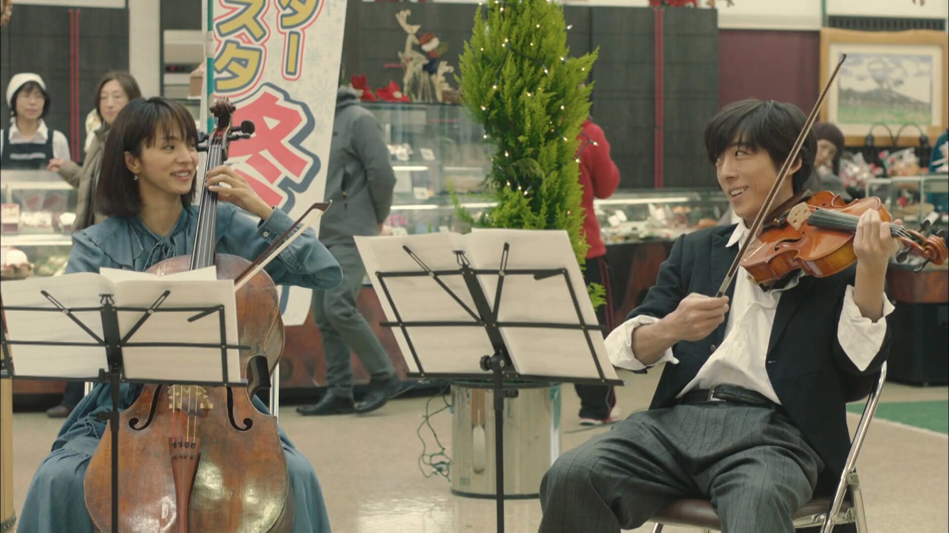 Маки Маки - ведущая скрипка. Женщина взрослая, резкая, быстрая на суждения и крепкое словцо. У неё семья в Токио, поэтому на съёмной квартире она появляется лишь по выходным. Судзуми Сэбуки - безработная виолончелистка. Ютака Иэмори - альтист. Молчаливый, но с секретами. Цукаса Бэппу - вторая скрипка и лидер квартета. Парень из музыкальной семьи, променявший инструмент на работу в пончиковом кафе. У каждого из квартета была мечта, и этой зимой будет возможность сделать шаг ей навстречу.