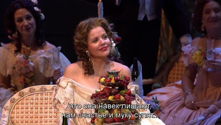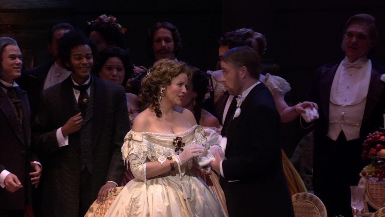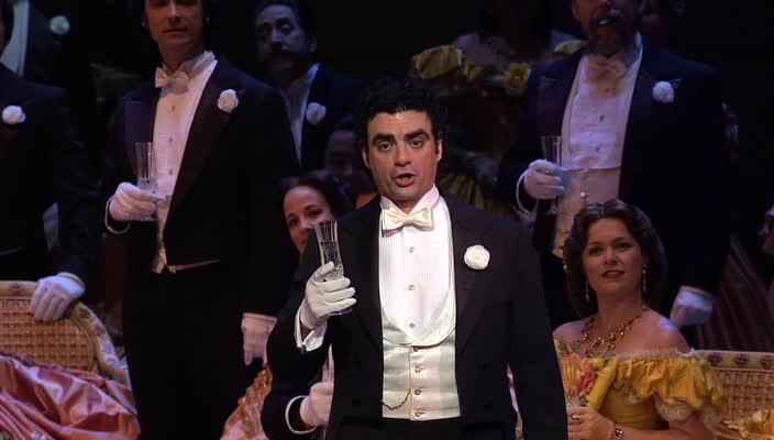 Постановка, открывавшая сезон 2006/2007 в крупнейшем оперном театре США - Опере Лос-Анджелеса. Мастерски поставленная Мартой Доминго «Травиата» отмечена страстной демонстрацией чувств, которую редко можно увидеть на сцене. В начале выступления мы наслаждаемся сопрано американской певицы Рене Флеминг, блистающей в качестве красивой, очаровательной и очень ранимой Виолетты Валери, которая всей душой тянется к своему новому поклоннику Альфредо Жермонту. С голосом, описываемым как «золотое образцовое сопрано» стилистическая многосторонность Флеминг продолжает захватывать нас. Превосходное мастерство Флеминг было отмечено Орденом Почетного Легиона, врученного французским правительством в 2005 году. Двукратная обладательница «Грэмми» Флеминг является единственной артисткой на записях «Decca» с 1995 года и принимала участие в документальном фильме Фила Грабского «В поисках Моцарта» (2006 г.), приуроченному к 250-летию со дня рождения композитора, а также в выпусках 2006-2007 гг. кинофильма «Маргарет». Всемирно известный лирический тенор Роландо Виллазон, мексиканец по рождению, уникален в качестве Альфредо – роль, в которой он дебютировал в 2001 году. Перед этим он выступал в Опере Лос-Анджелеса в «Джанни Скикки» в роли Ринуччио и в «Ромео и Джульетта» в качестве Ромео. Исполнение Виллазона особенно ярко проявляется в том месте спектакля, когда прерывается музыка, а страстный поцелуй Виллазона и неотразимой Флеминг продолжается долгое время, после того как музыка перестала играть. Менее экспрессивно, но не менее убедительно, исполнение итальянского баритона Ренато Брусона в роли Джорджио Жермона. Будучи по сценарию авторитетным отцом, Альфредо Джорджио руководствуется принципами чести и уважения семьи, когда просит Виолетту пойти на жертву. Брусон драматично поет и исполняет свою роль исключительно по-джентельменски. Красивые декорации и разнообразные костюмы украшают сценические партии наряду с завораживающей хореографией Китти Макнами... После ежегодного вводного ночного гала-концерта состоялся ослепительный приём с танцами под живой оркестр, который посетил генеральный директор Оперы Лос-Анджелеса Пласидо Доминго. Яркому составу исполнителей, особенно Флеминг, Виллазону и Брусону зал аплодировал стоя пять минут.