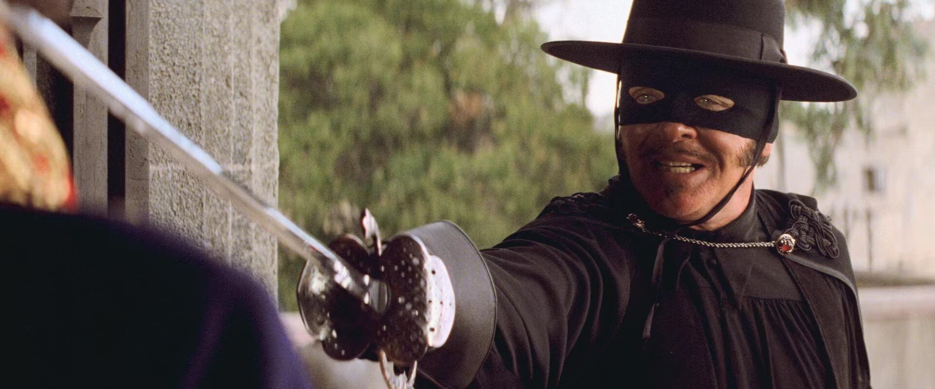 Дон Диего Де Ла Вега всю жизнь был защитником своего народа от злых деяний испанского губернатора Рафаэля Монтеро. Он творил добро под именем Зорро. Но пришла старость, а смерть жены, разлука с дочерью и долгие годы заточения в тюрьме еще больше подкосили его здоровье. Пришла пора найти достойного преемника для черной маски. Сама судьба сводит Алехандро Муррьета и Диего Де Ла Вегу. Но умудренный опытом дон Диего еще многому должен обучить молодого и горячего Алехандро, прежде чем осуществить план мести Монтеро. А наградой Алехандро станет не только смерть тирана, но и любовь прекрасной девушки Элены. Часть вторая: Легенда Зорро.