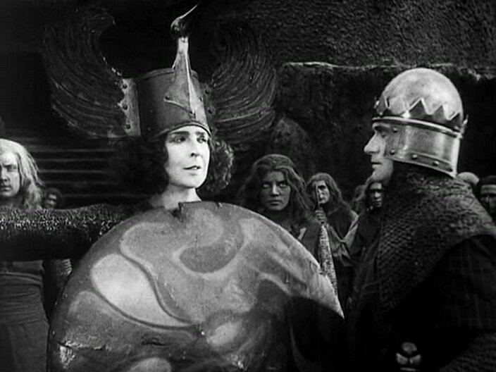 Героический эпос "Нибелунги", поставленный выдающимся немецким режиссером Фрицем Лангом ("Метрополис", 1927, трилогия о докторе Мабузе, 1922-1960 гг.) по мотивам древнегерманских легенд, является одним из безусловных шедевров мирового кино. Вышедший на экраны в 1924-м, поразивший зрителей мощью, зрелищностью, монументальностью, размахом, он стал одним из неоспоримых доказательств, что кинематограф, еще недавно балаганный аттракцион, в 20-е годы превратился в настоящее искусство со своим особым языком, средствами выразительности и огромной силой воздействия. "Нибелунги", включающие в себя два фильма — "Зигфрид" и "Месть Кримхильды", — это грандиозное полотно, на котором изображены богатыри и красавицы, валькирии и гномы, магические обряды и беспощадные сражения. Зигфрид, сын короля Зигмунда, одолел дракона, завладел сокровищами нибелунгов, подчинил себе двенадцать королей. Все эти беспримерные подвиги он совершил ради красавицы Кримхильды, чем и завоевал ее сердце. Брат Кримхильды, король Гунтер, решил жениться на королеве Брунхильде, но для этого должен победить ее в поединке, чего ни одному из женихов девы-воительницы еще не удавалось...