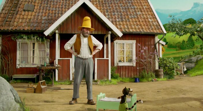 С тех пор, как у Финдуса появился новый матрас, он просыпается каждый день часа в 4 утра и устраивает на этом матрасе скачки, не давая Петсону насладиться утренним сном. Однажды в сердцах Петсон произносит роковую фразу: «Либо ты прекратишь прыгать, либо твоя кровать окажется где-то в другом месте!» А Финдус, вместо того чтобы испугаться, моментально соглашается отделиться от старого фермера. Решив, что это игра, Петсон обустраивает для Финдуса крошечный домик. Однако котенок воспринимает ситуацию куда как серьезно: теперь у него есть не только место для прыжков и игр, свобода и независимость, но и еще… собственный дом, а это вам не абы что. Одним словом, Финдус переезжает — и кажется, что жизнь больше никогда не будет такой, как прежде.