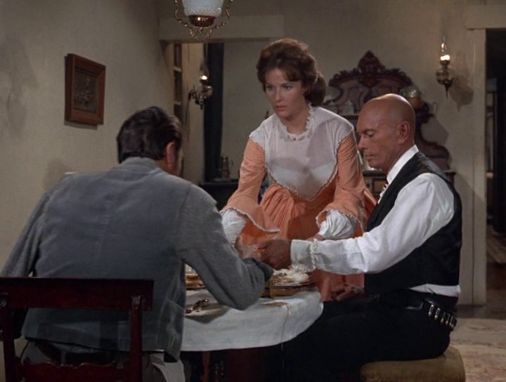Действие фильма относится к 1865г., времени окончания Гражданской Войны. Вернувшийся с войны Мэт Вивор узнает, что его мать умерла, а его ферма находится в собственности другого человека. Разговор с новым владельцем не получился и Мэт в честном поединке убивает его. Чтобы избавиться от Мэта, жители городка принимают решение нанять профессионального стрелка по имени Жюль Гаспар Д'Эстейн (Юл Бриннер). Французкое имя не должно вводить в заблуждение, Жюль - креол из Нового Орлеана. Он соглашается выполнить работу за 500 долларов. Но почему-то не спешит. Разгадка кроется в ключевой сцене фильма - встречей Жюля и Мэта и их объяснением. Жюля, в первую очередь, интересует вопрос почему Мэт воевал за южан. Почему он воевал за рабство? Он - рабовладелец? Нет, - отвечает Видор, - настоящий рабовладелец Сэм Брюстер, человек, которому принадлежит все в этом городе, и дома, и магазины, и люди. Рабом не обязательно может быть только человек с черной кожей, рабство имеет самые разные формы, в том числе и экономическую. Сэм Брюстер нажился на кровавой войне и продолжает крутить свои грязные делишки. После этого разговора зрителю становится понятно, что Жюль не просто циничный наемный убийца...