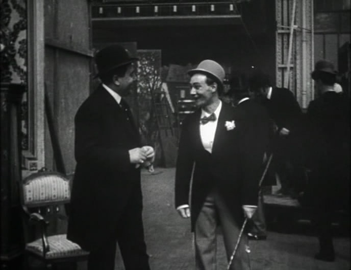 В жизни иногда происходят события поинтереснее, чем в кино. И в этом фильме Леонс Перре изобразил это с блеском. Итак, сначала мы попадаем на студию Гомон, где увидим как работает Леонс в кадре в качестве актёра и за кадром, как режиссёр; увидим известных гомоновских персонажей - Онезима, Бу-де-Зана... Последний (пятилетний мальчуган-озорник, герой серии фильмов Луи Фейада) и здесь занят привычным делом - насмехается над взрослыми. ...Но вот Леонс приходит домой, его ревнивая жена находит у него письмо от поклонницы, пишет ей ответное письмо от имени мужа и назначает свидание в кинотеатре... Не буду далее раскрывать детали сюжета, но вас ждёт совершенно поразительная кульминация! Большой интерес представляет и ещё один фильм, представленный в этой раздаче - "Кинематограф Леонса-кинематографиста". Подробнее о нём во вкладке "Дополнительно".