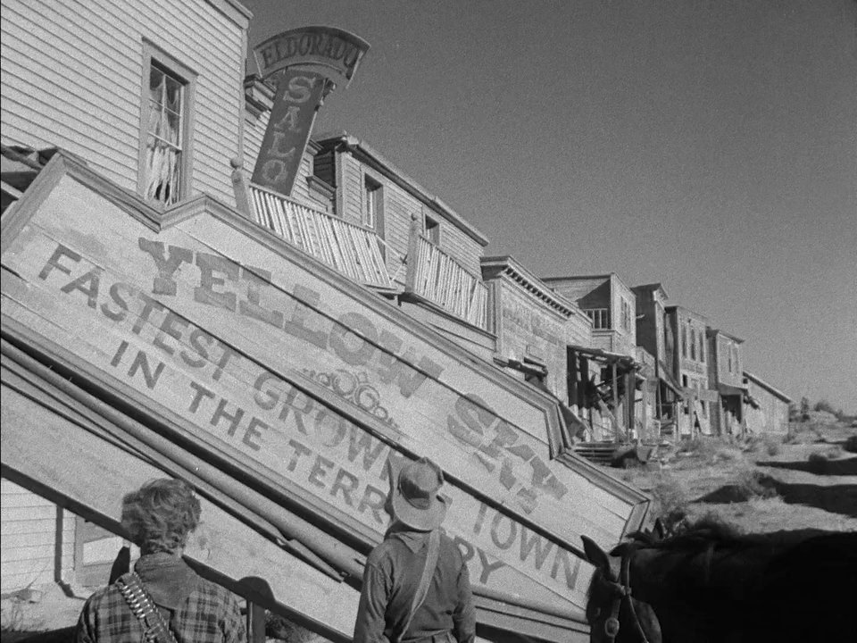 Два года прошло со дня окончания Гражданской войны между Севером и Югом, но из расформированных рядов ветеранов многие не вернулись к праведному труду, а стали сколачивать банды и грабить мирное население. Один из таких «лихих» отрядов, сделав очередной налёт и сорвав куш, уходит от преследования федеральных войск в выжженную солнцем и продуваемую всеми ветрами пустыню. В поисках воды и пищи на грани жизни и смерти они натыкаются на заброшенный город со странным названием «Жёлтое небо». В этом опустошённом мире гангстеры обнаруживают больного старика- старателя и его удивительно красивую внучку Констанс Мэй. Придя в себя от погони, получившие воду и кров, бандиты начинают осматриваться и понимают, что эти двое остались неспроста среди пыльных стен мёртвого города. Всему виной золото, найденное дедом. Решив отобрать золото, шайка готова на всё, но их планам не суждено сбыться. Лидер банды Джеймс Доусон влюбился в красавицу-внучку и не даст теперь в обиду свою девушку, даже если вся банда направит оружие против него...