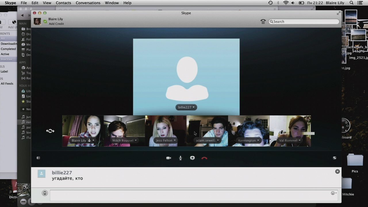 Обычный вечер после школы. К скайпу влюбленных Блэра и Митч подключаются друзья — Адам, Джес, Кен и Вэл… и кто-то седьмой с ником Billy227. Все уверены, что это компьютерный глюк, пока неизвестный не начинает им писать. Билли хочет знать, кто выложил в Сеть скандальное видео с их одноклассницей Лорой Барнс, из-за которого девушка покончила с собой. И он готов выяснить это любой ценой. Друзьям кажется, что можно просто выйти из чата, но это только кажется.