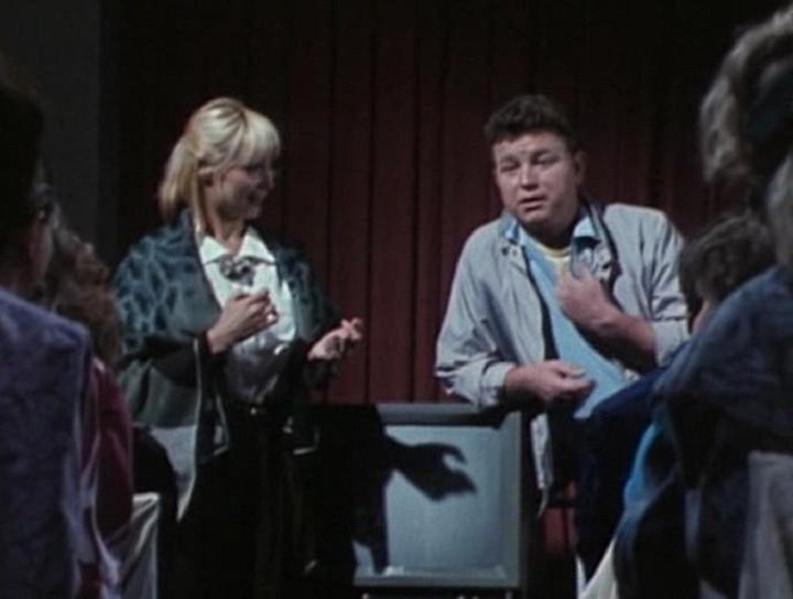 Из курортного видеосалона при просмотре фильма ужасов выскакивают в фойе двое: девушка и парень. Девушка рассказывает вышедшему с ней зрителю, что когда-то в этих местах в Гаграх снимался «замечательный, светлый фильм» «Весёлые ребята». Девушка предлагает превратить видеосалон в салон автобуса и совершить с ней путешествие-экскурсию по местам съёмок фильма. Зритель соглашается ей помочь и преображается, говорит голосами Сталина, Утёсова и других, поёт. Получается живой и иллюстрированный цитатами из фильма «Весёлые ребята» рассказ об атмосфере тех лет и съемках классики Советского комедийного кино.