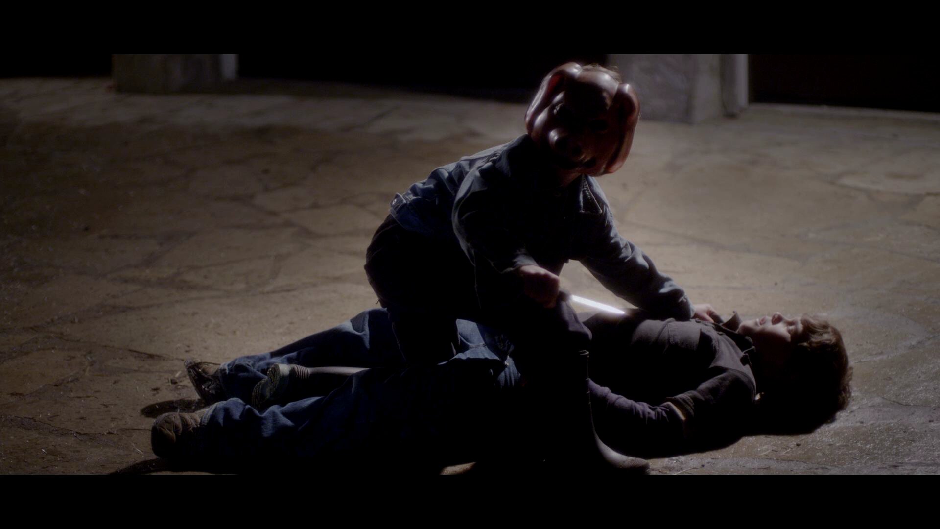 Кайли становится жертвой сексуального надругательства на вечеринке у популярного юноши, друзья которого снимают позор девушки на видео и распространяют ролик по социальным сетям. Претерпев издевательства над собой со стороны соучеников на вечеринке, Кайли Уинтерс, чтобы не оставаться на Хэллоуин у себя в городе, соглашается присмотреть за детьми в отдаленном загородном особняке. Хозяева оставляют на ее попечение двух маленьких детей и вазу с конфетами на случай, если в День Всех Святых придут маленькие попрошайки.Через какое-то время действительно раздается стук в дверь, и, открыв ее, Кайли видит маленького мальчика с поросячьей маской на голове, а за ним мужчину в маске свиньи, вид которого не предвещает ничего хорошего. В испуге она закрывает дверь, но избавиться от страшных гостей не так-то просто.Ей придется собрать все свое мужество, чтобы спасти себя и двоих детей от вломившихся в дом убийц…