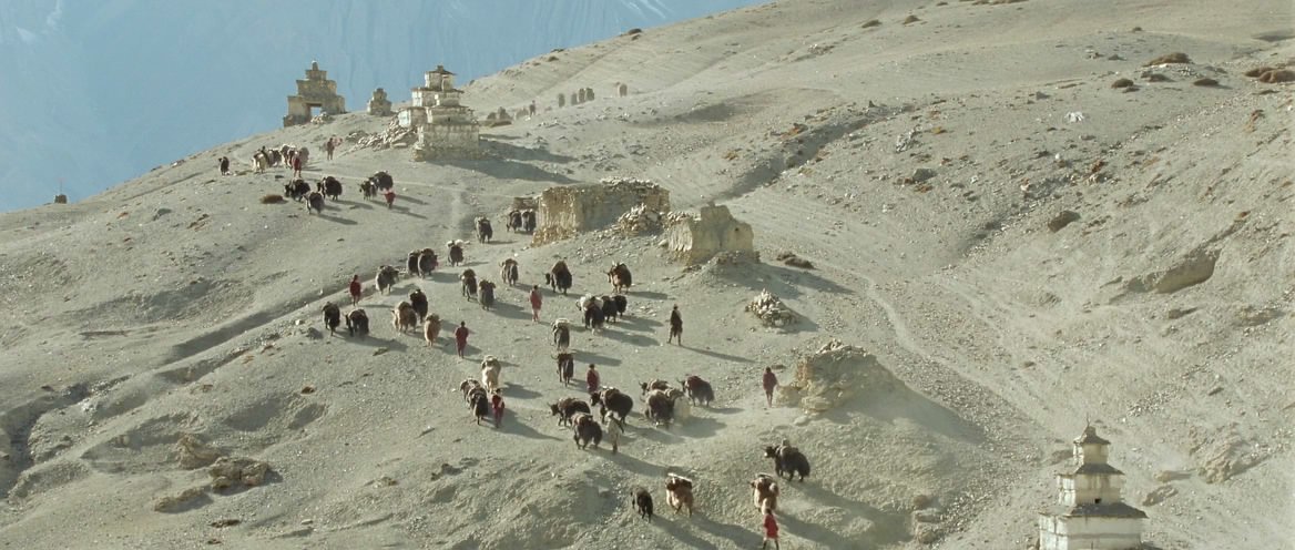 В запретном непальском районе Долпо, расположенном на высоте пять тысяч метров, вождь Тинле и молодой погонщик Карма не могут прийти к согласию, кто из них поведет через горы караван вьючных яков с грузом соли, которую нужно обменять на зерно. Карма сам хочет стать вождем, но Тинле считает, что звание вождя должно перейти по наследству к его внуку. Каждый со своим караваном, соперники отправляются в смертельно опасный путь. Долгие недели им предстоит бросать вызов жестоким морозам, ураганным ветрам и всесокрушающим лавинам….