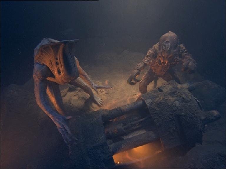 Где-то в космических глубинах столкнулись и взорвались два инопланетных летающих объекта, после чего обломок одного из них пересек, быть может, не одну галактику, прежде чем приводнился на планете Земля в районе злополучного Бермудского треугольника, где и опустился на дно океана. Спустя пять лет сотрудники научно-исследовательской глубоководной океанической лаборатории, работавшей вблизи Бермудских островов, обратили внимание на необычную активность громадного количества акул, бороздивших местные воды. Акулы напали на ученых, выходивших для работы за пределы лаборатории, и убили парочку исследователей. Ученые со станции успели дать наверх сигнал о помощи, и для спасения сотрудников лаборатории в этот район направилась подводная лодка американского ВМФ «Рузвельт». В то же самое время, после атаки хищников на какой-то из бермудских пляжей, в организме одной пойманной акулы были обнаружены странные оранжевые кристаллы внеземного, как показали анализы, происхождения.