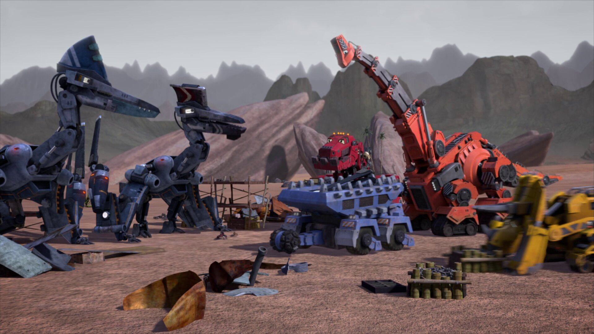 Сериал о роботозаврах, которые жили миллионы лет назад на нашей Планете. Динотраксы, Рептулы – гибриды динозавров, строительных автомобилей и инструментов. Они питаются травой, но есть и те, кто охотятся на своих собратьев. Одни живут на суше, другие – под водой, а третьи умеют летать. Среди всего этого разнообразия живет и главный герой – Ти Ракс – гигантский Тираннозавр-экскаватор. У Ти Ракса храброе и доброе сердце, у него есть друзья: Хамелеон Реввит может быть дрелью, брахиозавр Скайе - подъемным краном, Тон-Тон – самосвалом, а Габи – бульдозером. Сериал "Динотракс" рассказывает, как эта дружная компания динотраксов постоянно попадает в различные приключения. Они помогают друг другу в доисторической реальности и противостоят гигантскому и опасному Ди-Страксу.