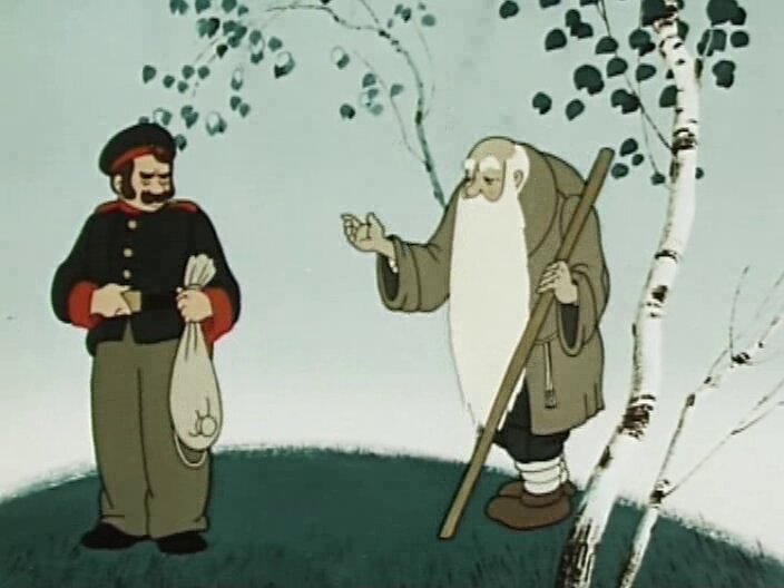 Мультипликационный фильм о никогда не унывающем храбром солдате, который найдет выход из любой ситуации и справится с любыми неожиданностями... Храбрый солдат возвращается с войны. Отслуживший солдат отдал свой скромный обед нищему, попросившему милостыню. За это старик подарил волшебную торбу, в которую можно вместить, что только пожелаешь. "Скажешь волшебные слова - полезай в торбу - все туда и полезет!" Солдат отправляется дальше, и спасает девочку от злого филина. Девочка рассказывает солдату, что это вовсе и не филин, а оборотень, которой с компанией оккупировал царский замок. Солдат решает спасти глупого царя от нашествия нечистой силы и побеждает ее с помощью волшебной торбы и в тридевятом царстве, с помощью солдатской смекалки, увязал служивый в котомку нечистую силу, взявшую власть в царском дворце. Однако царь не спешит благодарить вояку за помощь...