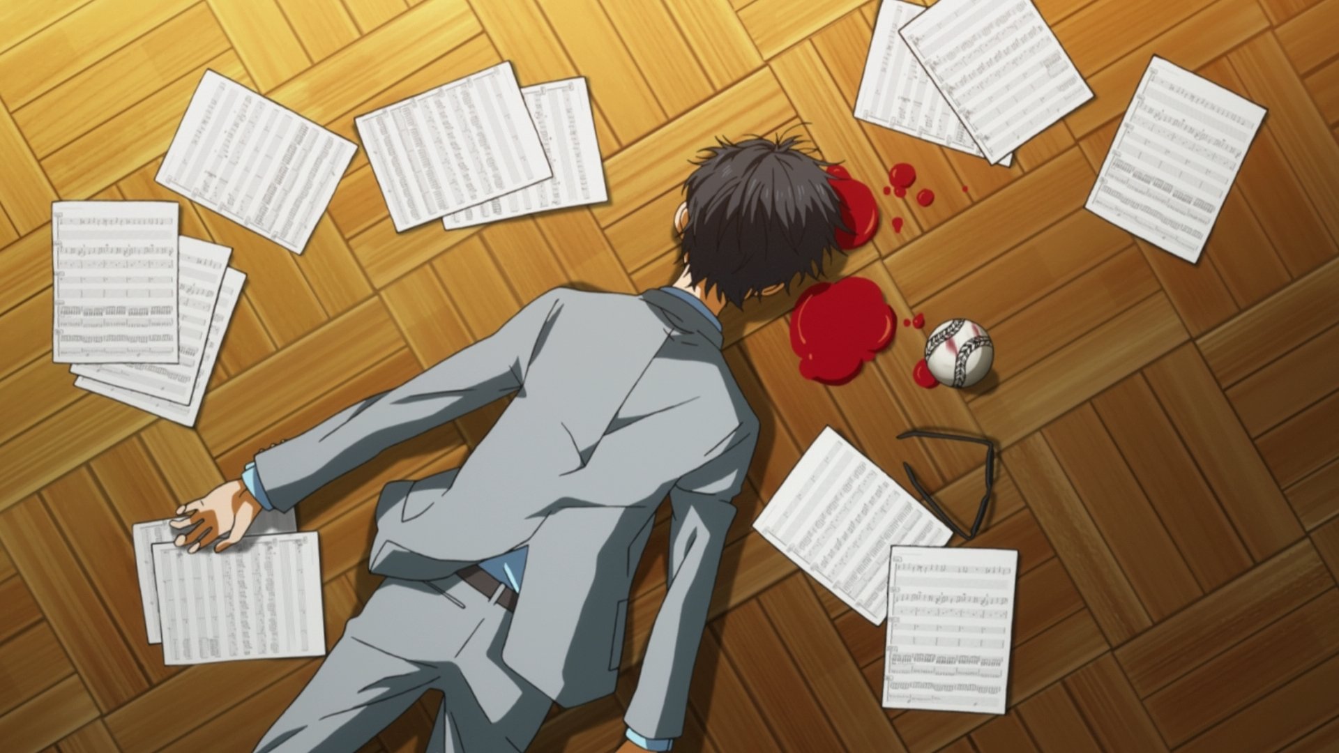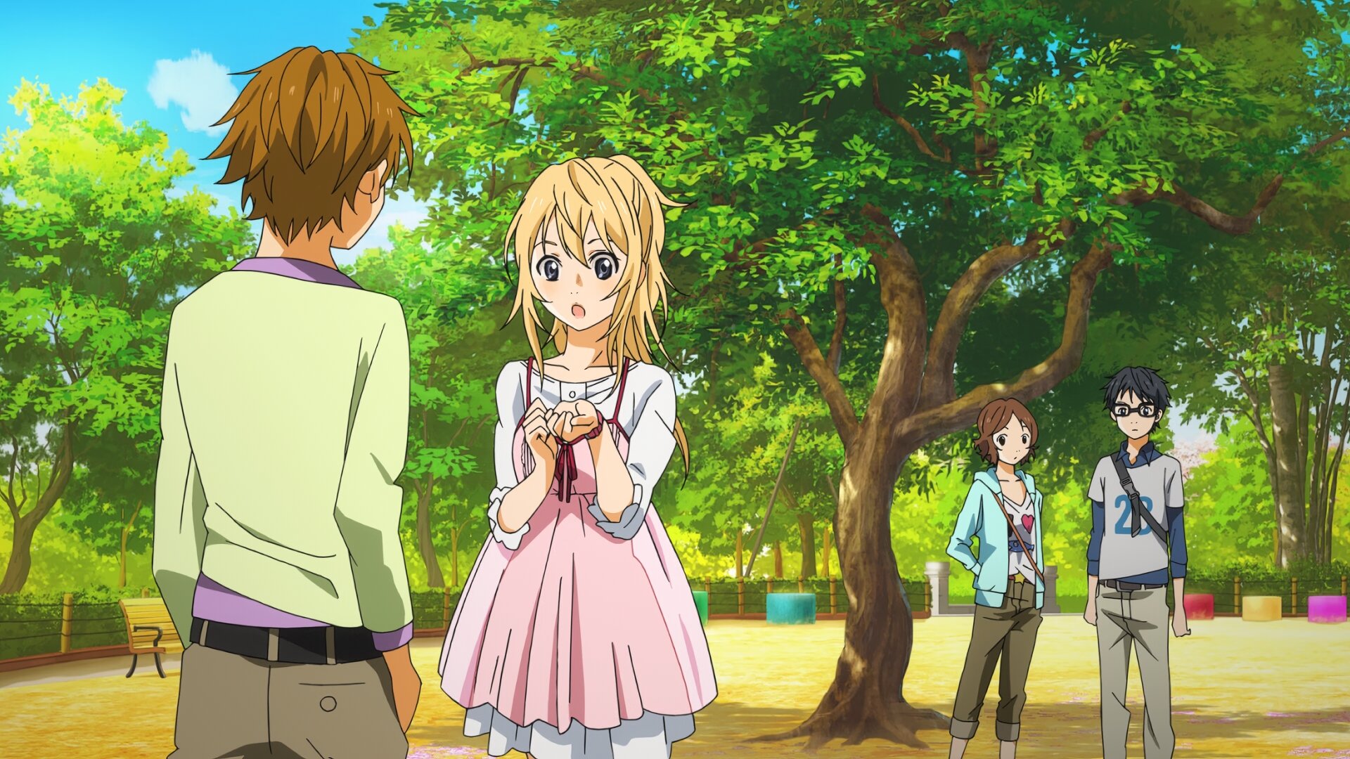 Косэй Арима — мальчик, профессионально играющий на фортепиано, выигрывал все детские конкурсы, его имя было известно всем начинающим музыкантам. Мать Косэя была его учителем. После того, как она неожиданно скончалась, у Косэя случился нервный срыв во время выступления, в результате чего он больше не мог чувствовать музыку, несмотря на прекрасный слух и большой талант.