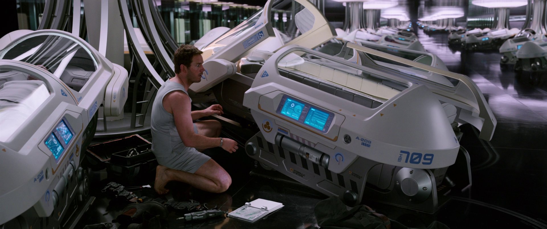 Фильм Пассажиры – приключенческая кинолента от Мортена Тильдума, которая рассказывает о недалеком будущем. Фантастическая картина переносит нас на космический корабль, где временно обитает 5000 человек, не включая экипаж. Они являются первыми, кто заселит новую планету. Отнюдь происходит сбой в системе и один из героев просыпается на 90 лет раньше положенного времени. Проходит несколько месяцев, и он начинает сходить с ума в одиночестве с компанией лишь одного робота-бармена, который радует зрителей интересными шутками и пытается поддержать главного героя.