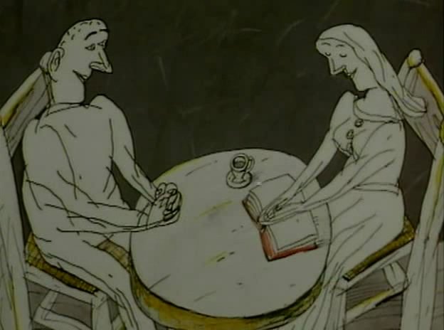 Никто не знал, но все слова, сказанные гостями в кафе, превращались в воздушные шарики. И создавали невероятные картины. Пожилой официант пытался завязать разговор с молодой девушкой, читающей книгой.