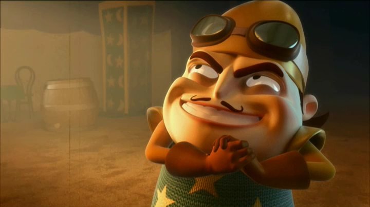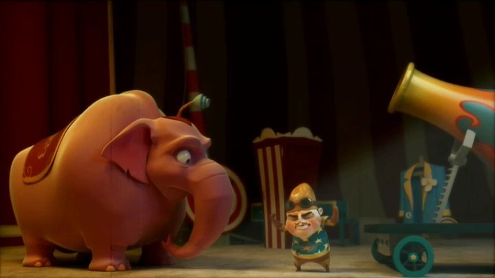 Действие происходит в цирке. Самоуверенный человек-ядро убирает конкурентов. Но большой и розовый слон ему не по зубам.