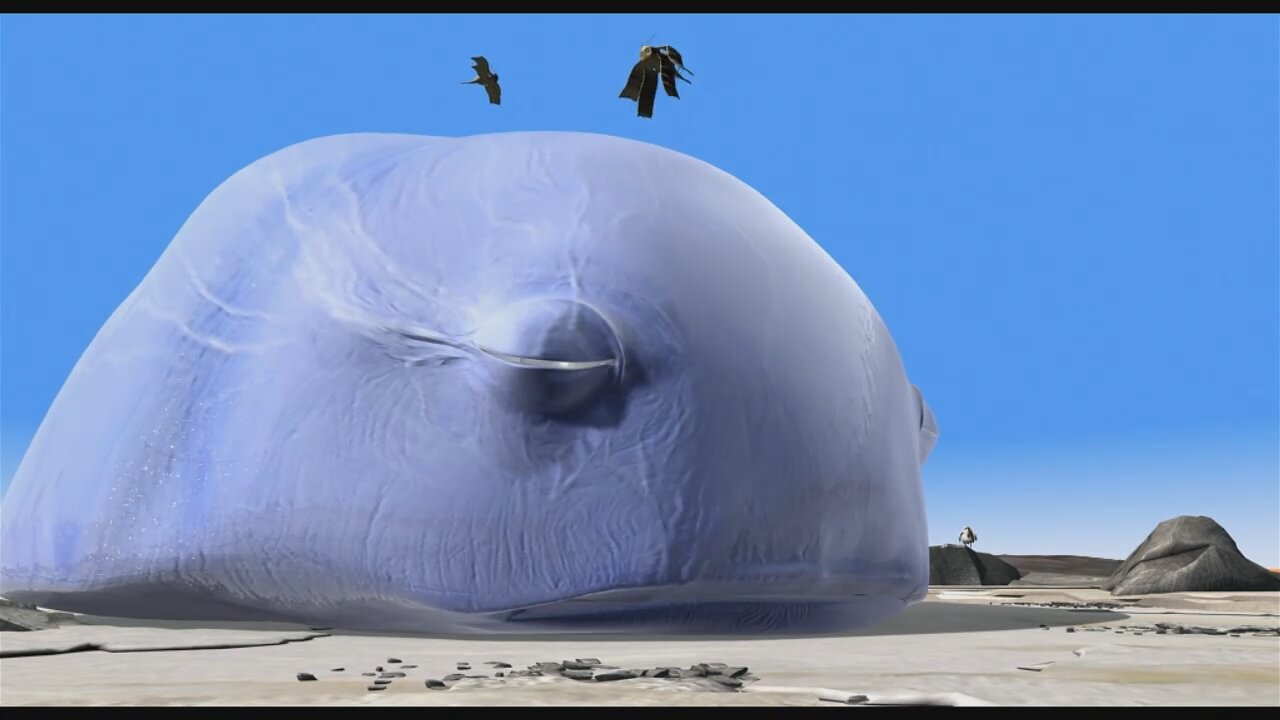 Немаленький кит умирает в пустыне, под лучами жаркого солнца. Его предсмертная агония провоцирует происшествие между жильцами населяющими эти места. Содержатся и прочие, кто встаёт на службу охраны беззащитного млекопитающего.