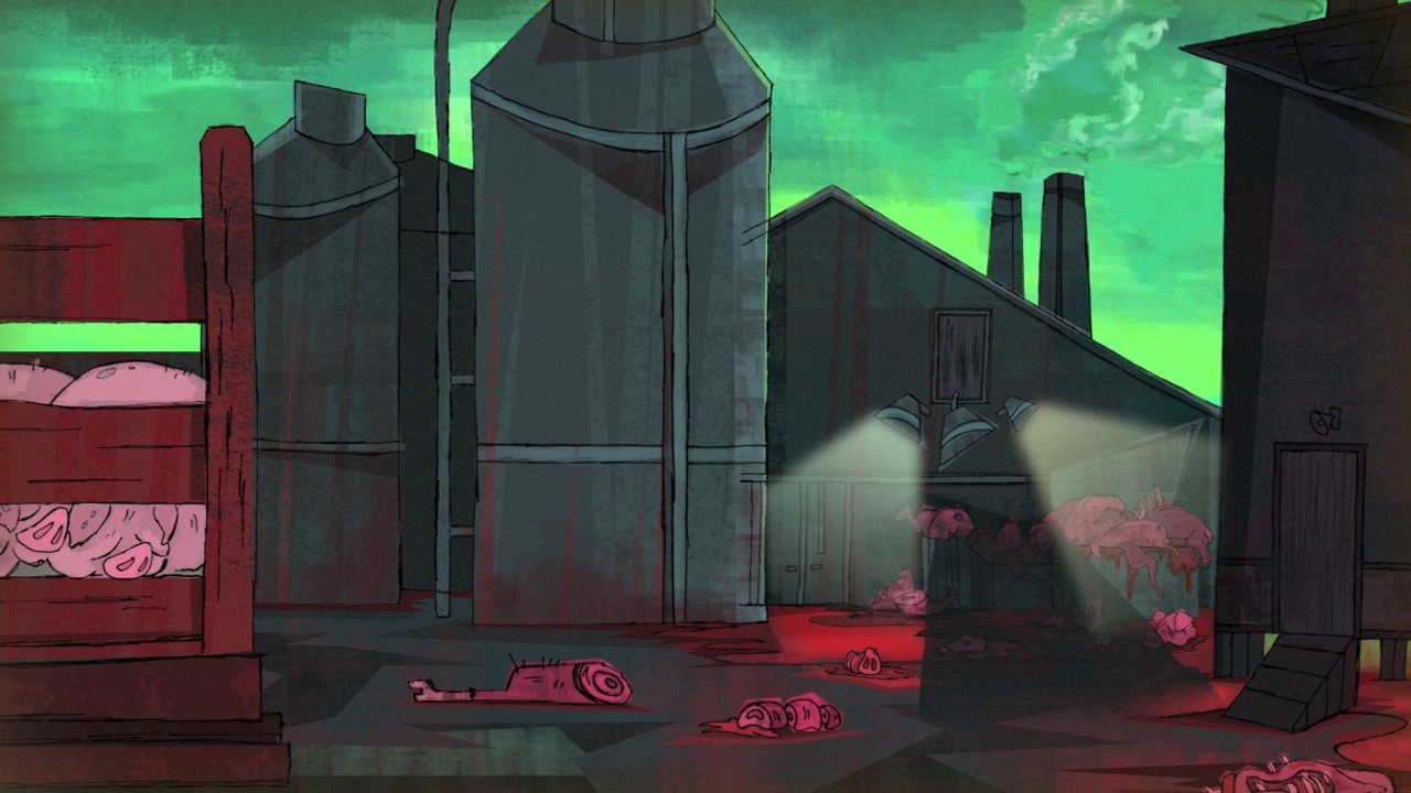 Бедная свинья сбегает со скотобойни, но окружающий её мир ужасен. К счастью, она нашла убежище в небольшом зоомагазине… К счастью?.
