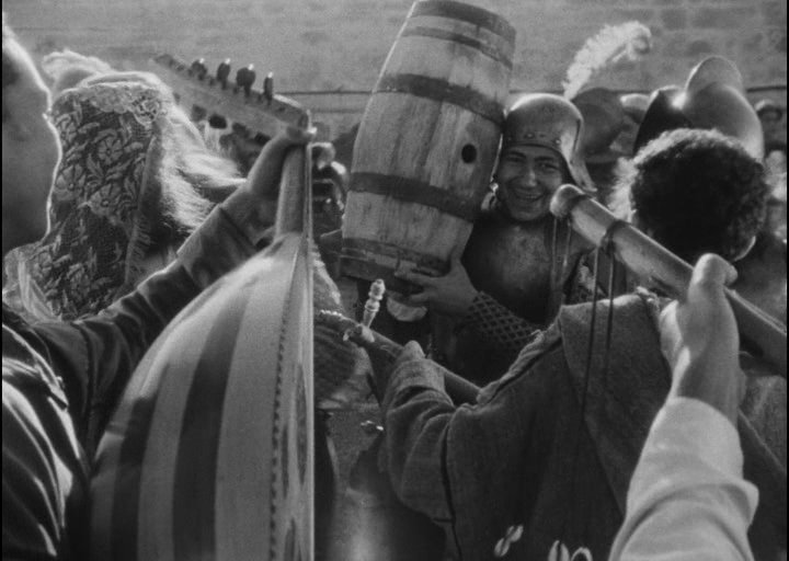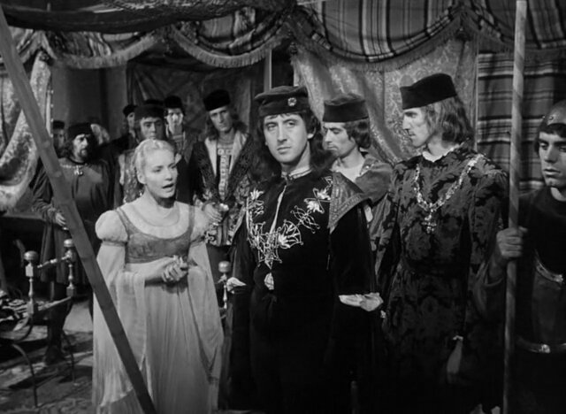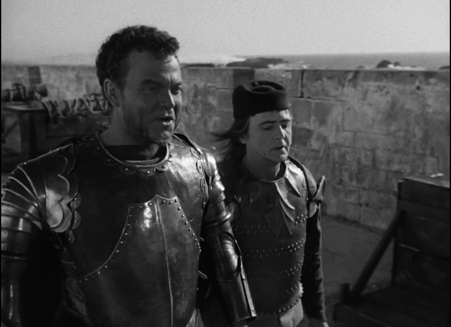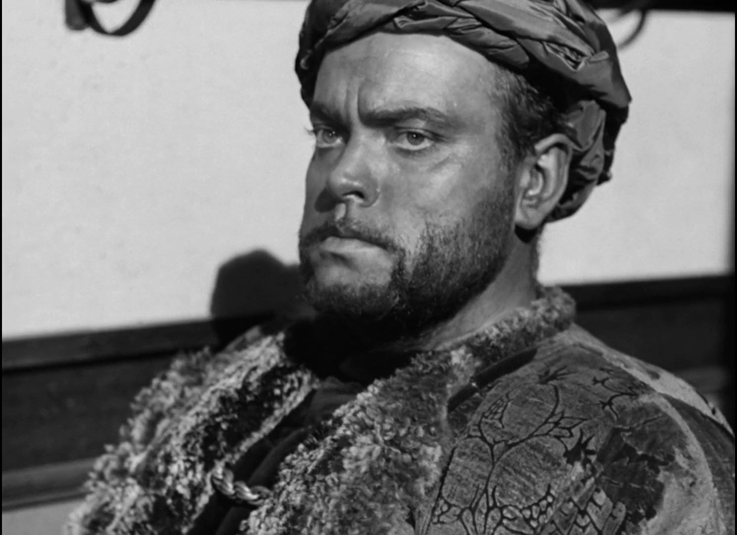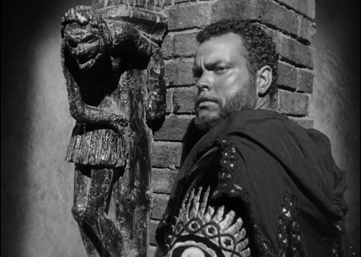 Бессмертная кинопостановка бессмертной трагедии Шекспира, в которой главную роль сыграл сам режиссер фильма Джордж Орсон Уэллс. Съемки «Отелло» продолжались 4 года из-за проблем с финансированием и Орсону, в течение этого периода, пришлось играть в чужих картинах, чтобы помочь удержать «Отелло» на плаву. Среди них были «Коварный лис Борджа» — Хенри Кинга, «Черная роза«-Хенри Хэтэуэя и «Третий человек» — Кэрола Рида. Его труды не пропали даром — фильм считается одной из лучших экранизаций Шекспира динамичной, сжатой и напряженной. Его фильм «Отелло» открывается торжественным и скорбным прологом: вдоль морского побережья, на фоне каменных крепостных стен движется похоронная процессия, реют штандарты, сверкает оружие, плывет на плечах латников гроб с телом черного полководца и, ярясь, как пойманный хищник, смотрит на посмертное торжество своего врага запертый в железную клетку Яго.
