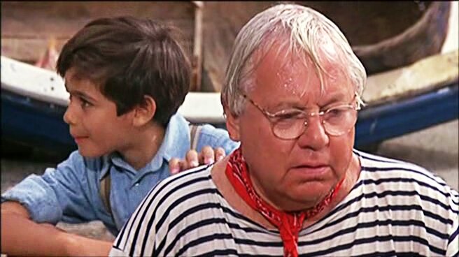 Картина поставлена по мотивам книги "Снежок" Эмилио Несси. Старый актер (Паоло Вилладжио) отправляется в последние в своей жизни "гастроли" перед пенсией развлекать пассажиров в круизе на теплоходе. На старика никто не обращал внимания, кроме девятилетнего мальчика. А в тот же день во время грозы на свободу случайно вырвался дорогой белый дельфин, которого с целью наживы держал в неволе жестокий и бездушный злодей со стальной ногой. Получилось так, что старик, опасаясь за свою пенсионную книжку, положил ее в бутылку на случай, если корабль затонет, и столкнулся с официантом. В результате бутылка полетела за борт, актер спустился за ней по веревочному трапу, а тот самый белый дельфин, за которым злодей послал дрессировщицу, утащил бутылку вместе с обеспеченной старостью. Так и начались забавные приключения с дельфином в этой идеальной для семейного просмотра приключенческой комедии.