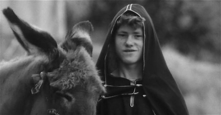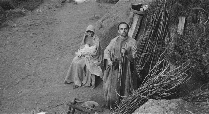В полудокументальной манере с использованием непрофессиональных актеров в черно-белом изображении рассказывается о жизни Иисуса Христа. Сценарий написан по Евангелию от Матфея. Иисус в изображении Пазолини кажется гневным, он как бы торопится, быстро и отчетливо выговаривая канонический текст, словно осознавая, что времени у него мало.