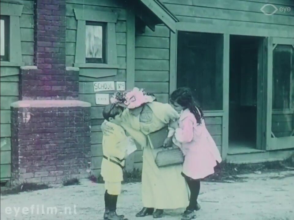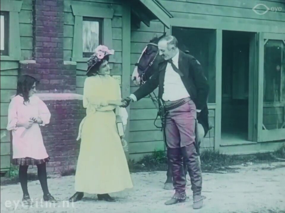 Ну, что здесь описывать? Вестерн и мелодрама. Красотка школьная учительница, за внимание которой соперничают плохой ковбой и хороший ковбой. И конечно же индейцы, ну, куда ж без них... Надо сказать, что в те давние времена мелодрамы с персонажами Ковбой и Учительница были не менее популярны, чем в наше время фильмы с Домохозяйкой и Сантехником. Ага. Фильм цветной. Да, цветной! Даже не спорьте со мной.