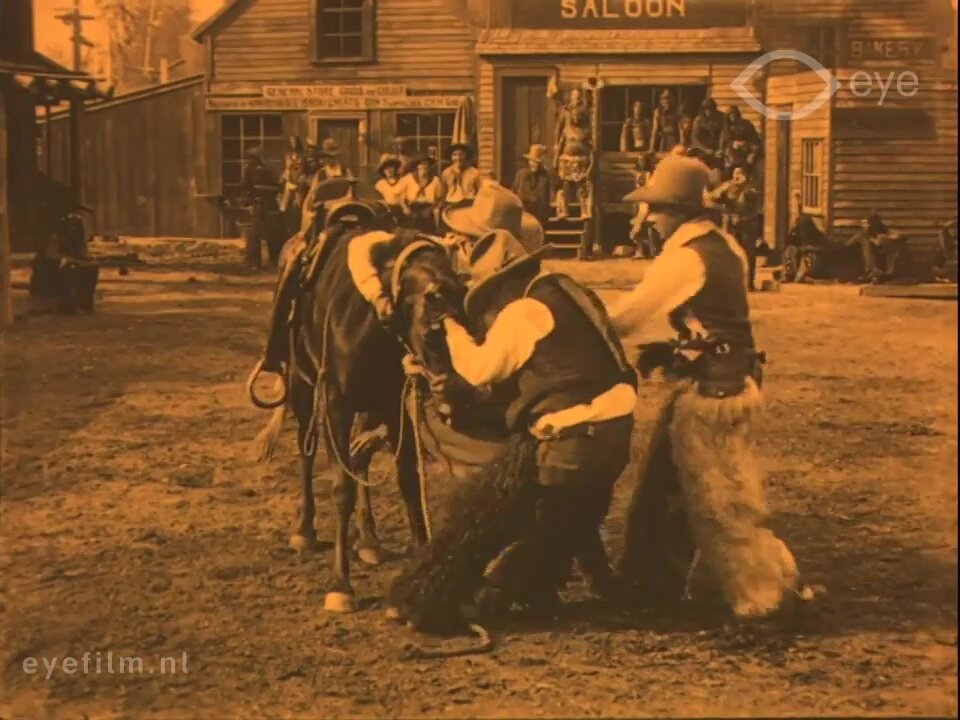 Бравый, мужественный ковбой, получив наследство, переезжает в большой город и ведет жизнь добропорядочного джентльмена. Но не дают ему покоя ностальгические воспоминания о буйной и свободной ковбойской жизни. И он приглашает в гости былых своих товарищей. И они приезжают. Всем ранчо. Вместе с лошадями. И ведут себя как на ранчо. Короче, все ностальгические настроения у старого ковбоя как ветром сдуло... :)