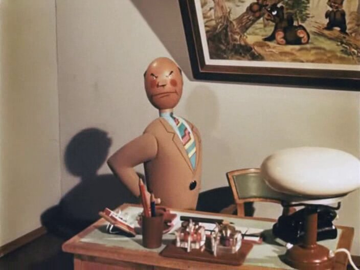 Маленького работничка за усердие и скромность повышают в должности. Став начальником некоего учреждения, герой мгновенно преображается: он груб с сослуживцами и посетителями, никого не допускает в свой роскошно обставленный кабинет, подлинную деловую деятельность подменяет бумажной волокитой. Но это продолжается недолго...