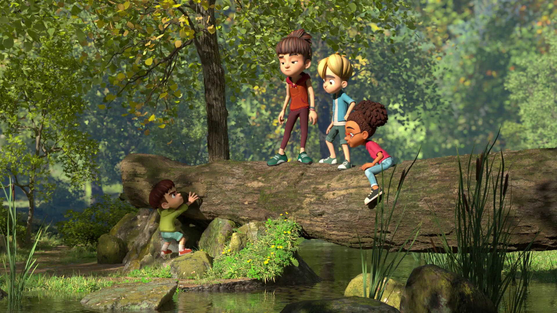 В маленькой деревушке Бельфонтен, расположенной у густого леса неподалеку от речки, живут веселые школьники и их родители. Для ребят сама природа стала игровой площадкой: каждый день они посвящают новым открытиям, развлечениям и важным жизненным урокам. Несмотря на то, что герои регулярно ссорятся и могут не поделить что-то между собой, их сплачивают совместные приключения, которые можно найти только за пределами больших городов.