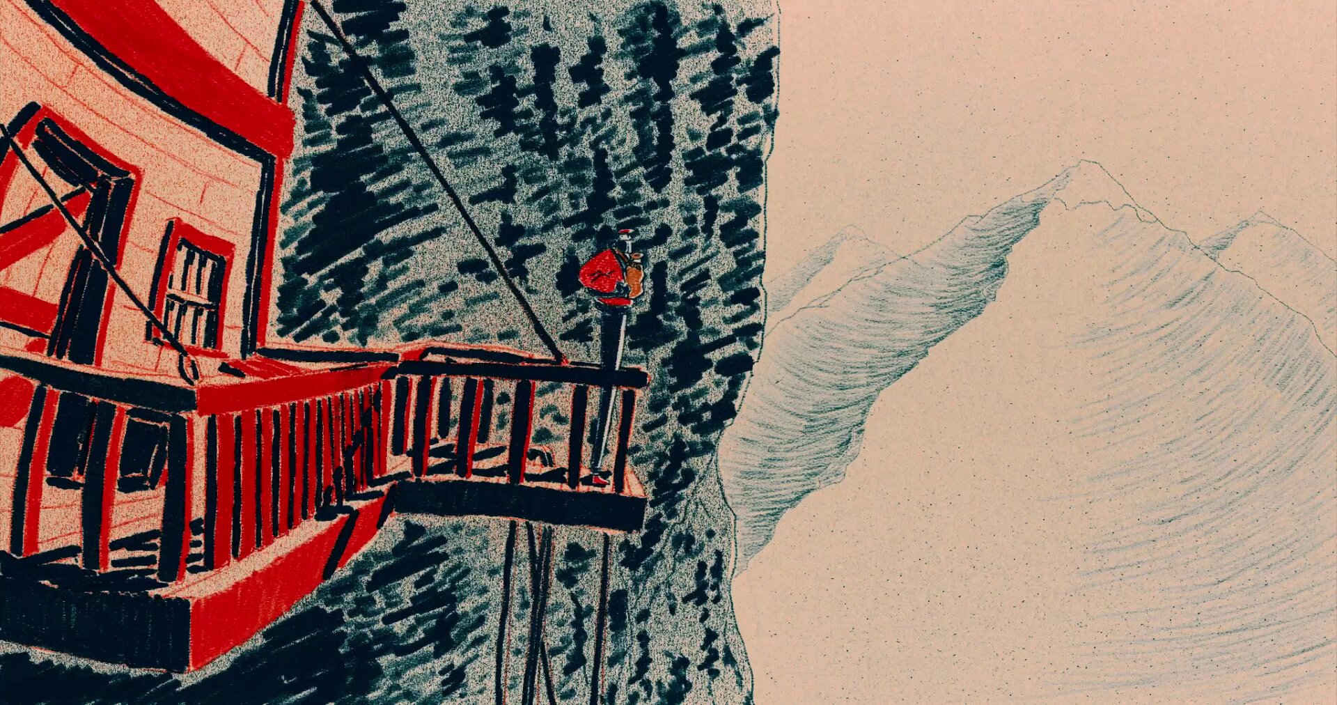 Отец и его маленький сын живут в домике, цепляющемся к скале высоко над долиной с посёлком, и ежедневно слетают на парашюте вниз, чтобы продать лёд. Но однажды погода меняется, лёд в естественном холодильнике не замерзает, а снежная шапка скалы начинает таять...