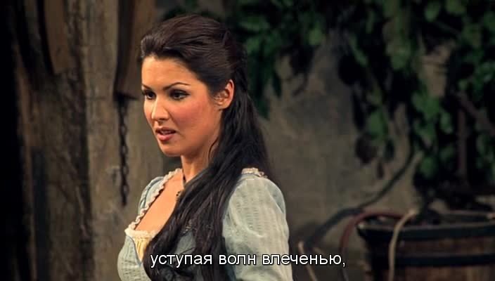 В итальянской деревне крестьянка кружит голову односельчанину, используя для этого заезжего сержанта. Бродячий лекарь-шарлатан продаёт влюблённому односельчанину якобы «любовный напиток», который, тем не менее, позволяет решить проблему. Крестьянин и крестьянка женятся... Конечно, суперпопулярный дуэт можно счесть удачной работой продюсеров, догадливо рассчитавших, что эффектное сопрано плюс эффектный тенор по совокупному воздействию куда увереннее найдут путь к сердцам миллионов. И ведь действительно миллионов. Сольная слава Анны Нетребко отличается именно такими масштабами. Чего у неё не отнимешь, — это почти магическое умение буквально на ходу сплетать эдакую ослепительную декорацию. Ощущаются музыкальность, сила голоса, его полётность, артистизм, уверенное владение сценой и аудиторией, а остальное подмечается, но не так чтобы сокрушает. При таком умении понятны и признания певицы о крупных партиях, разученных за пару часов. Про отношение Вильясона к своей партии можно отметить, что для своего возвращения на сцену, состоявшееся в марте прошлого году, после почти трёхлетнего перерыва, Роландо Вильясон выбрал Вену и выступил в роли Неморино в «Любовном напитке».