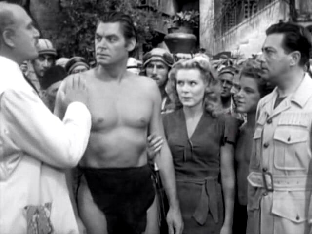 Тарзан, Джейн, их сын Бой вместе с любимой обезьянкой Читой, отправляются в деревню за покупками. Все идет своим чередом непринужденно и спокойно, но неожиданно на деревенскую площадь вбегает слон, на спине которого лежит смертельно раненный мужчина. Сказав, что его друзей убили дикие леопарды, и он единственный кому удалось вырваться из их лап, несчастный умирает. Тарзан, осмотрев раны на теле убитого, говорит полиции, что это убийство совершил не леопард, а люди одетые в шкуры леопардов…
