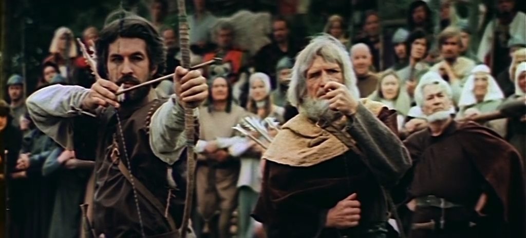 В основе сюжета фильма - легенды о народном герое средневековой Англии, защитнике обездоленных Робин Гуде. Он и его славные стрелки, обитающие в Шервудском лесу, наводят ужас на феодалов и церковников - угнетателей народа.