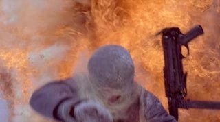 В начале фильма урка бьёт Сторожа ножом в живот, после чего оказывается, что сторож случайно нажал спиной на кнопку тревоги. В повести — сторож, получив рану в живот, пополз и кровавыми руками нажал на кнопку.