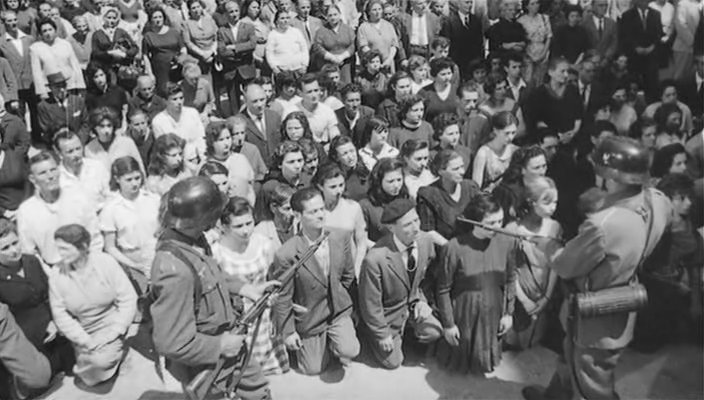В сентябре 1943 года Италия объявила о капитуляции, но Германия хочет заставить ее как и раньше сражаться за фюрера и фашизм. В оккупированном Неаполе на одной из площадей немцы расстреливают случайного прохожего – итальянского моряка, который радовался перемирию, а насильно согнанных в толпу жителей заставляют аплодировать. Под дулами автоматов люди, рыдая, рукоплещут… .