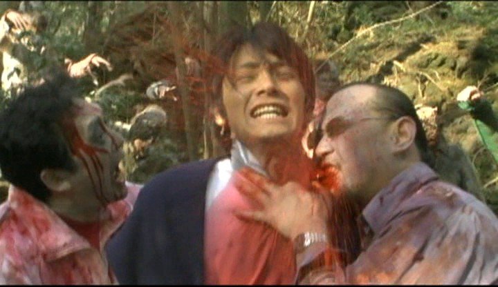После крушения летающей тарелки в глухой японской провинции, мертвецы с окрестных кладбищ начинают дружно вылезать из могил и нападать на живых. Отряд солдат и горстка уцелевших гражданских укрываются от толп зомби в отеле на окраине леса.В фильме присутствует ненормативная лексика!
