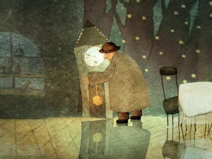 В преддверии Нового года отец с сыном отправился в город за покупками. Везя малыша на санках по скрипучему снегу, родитель заметил горящий свет в окне одной старенькой лавки. Раньше ему приходилось её видеть только издали, но сегодня герои решили зайти внутрь. Хозяином магазинчика был добрый старичок, являющийся волшебником. Все игрушки стали оживать: снеговик бегал, мирно лежащий в углу плюшевый кот взялся мяукать, музыканты играть, а отцовская шляпа превратилась в цилиндр. Малыш начал открывать одну потайную дверь за другой, узнавая немало интересного...