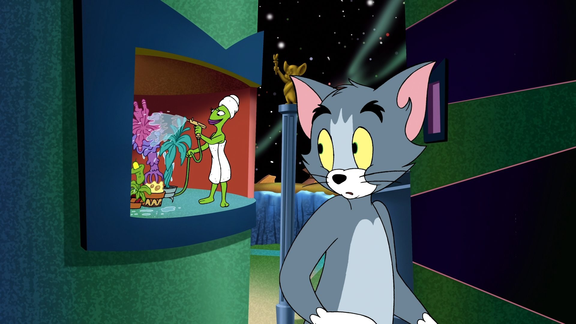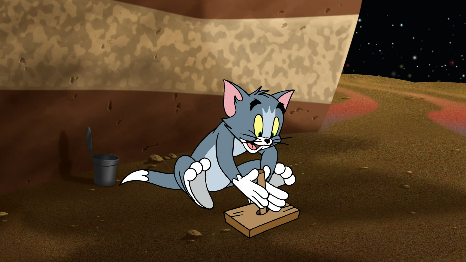 Выходит, что для своих погонь и проказ легендарные Том и Джерри уже использовали все возможные места на нашей старушке-Земле; и теперь забавные зверушки решают совершить вояж на Марс, чтобы повеселиться там от души! Вот, правда, марсиане оказались мелковаты: крошечные гуманоиды посчитали Тома свирепым галактическим монстром и решили расправиться с беднягой. Марс атакует! А в это время маленький хитрый Джерри был по ошибке признан возвратившимся после долгого отсутствия космическим вождем марсиан. Смогут ли мышонок и кот отложить на время свои разногласия, чтобы спасти Землю от инопланетного вторжения? Ведь для этого потребуются все девять жизней кота Тома.