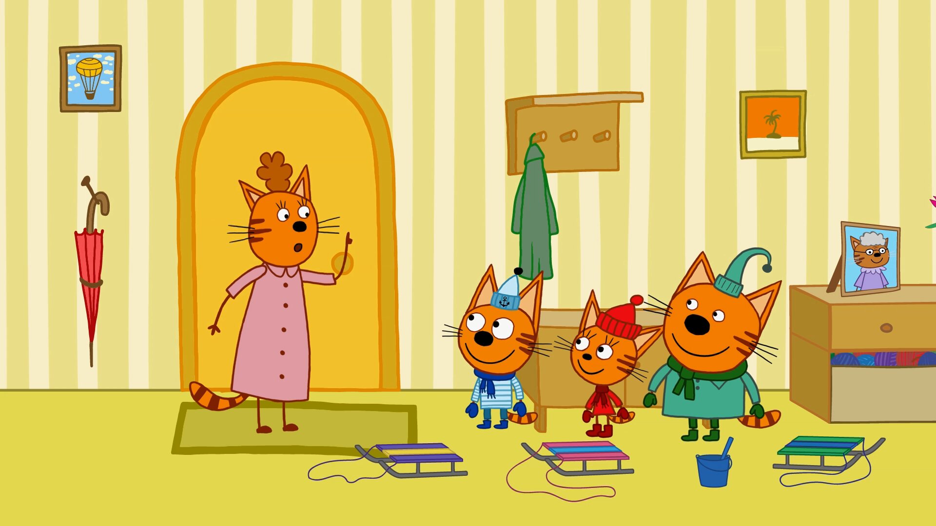 Анимационный сериал рассказывает о жизни трех забавных котят. Герои фильма - братья Коржик и Компот и их маленькая сестренка Карамелька. Котята все делают вместе и поддерживают друг друга.