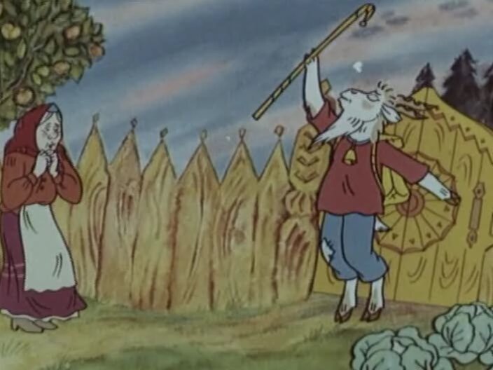 У доброй бабушки Варварушки жил козел Евсей. И был этот козел всех козлов умней: и хлеб напечет, и животных покормит, и на дворе уберется. Бабушка на своего козла не нарадуется, ей в селе все завидуют, ведь у нее такой замечательный козел. Но вот однажды наскучила Евсею его жизнь и решил он пойти в лес погулять. Как только не отговаривала его бабушка Варварушка от этой рискованной затеи: «Не ходи в лес. Там волк живет. Он три года не ел, все козлятинки хотел». Не поддался уговорам козел Евсей, сказал, что волка не боится и в лес пошел. Расстроилась бабушка, все ждала своего козлика, звала его около леса, но никто ей не отвечал…