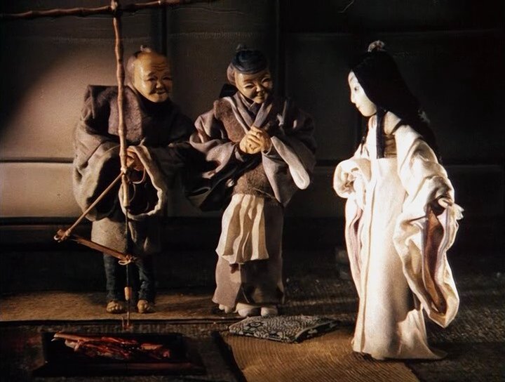 Мультипликационный фильм для детей по мотивам японской народной сказки о девушке-журавле, которая умела ткать прекрасные ткани и которую погубила людская жадность.