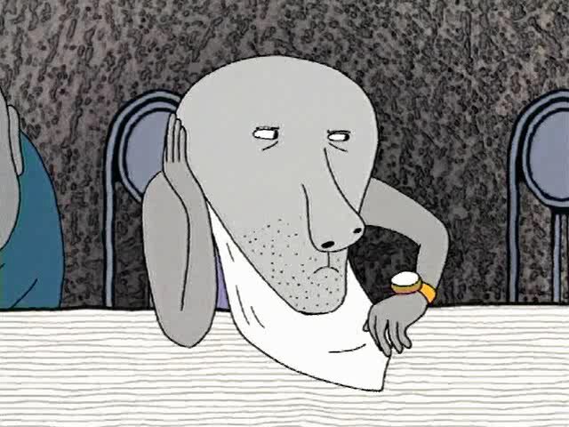 Мультипликационный фильм для взрослых о поведении людей в состоянии скучного ожидания.