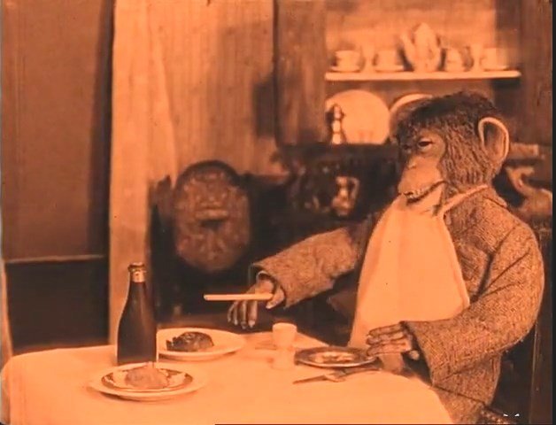Считается, что это последняя кинолента в фильмографии испанского и французского режиссёра, сценариста, актёра и оператора Сегундо де Шомона, одного из пионеров и кудесников немого кинематографа. Известно, что этот мультфильм не был снят на какой-либо профессиональной студии и является частным проектом, над которым, по имеющимся сведениям, Шомон работал в свободное время, а его ассистентами были жена и сын. Сюжет этого мультфильма с курьёзным названием довольно необычен, да и концовка у него неожиданная - картинка внезапно обрывается, оставляя нас с мыслью о том, что, возможно, проект по какой-то причине был незакончен... Лулу - жутковатого вида человекообразная обезьяна, приходит однажды вечером домой, вкушает приготовленный с помощью волшебной палочки ужин, и отправляется спать, но вскоре просыпается от шума, устроенного забравшимся к ней вором, решившим заодно полакомиться остатками недоеденного ужина. Не знал вор, на чью собственность покусился...