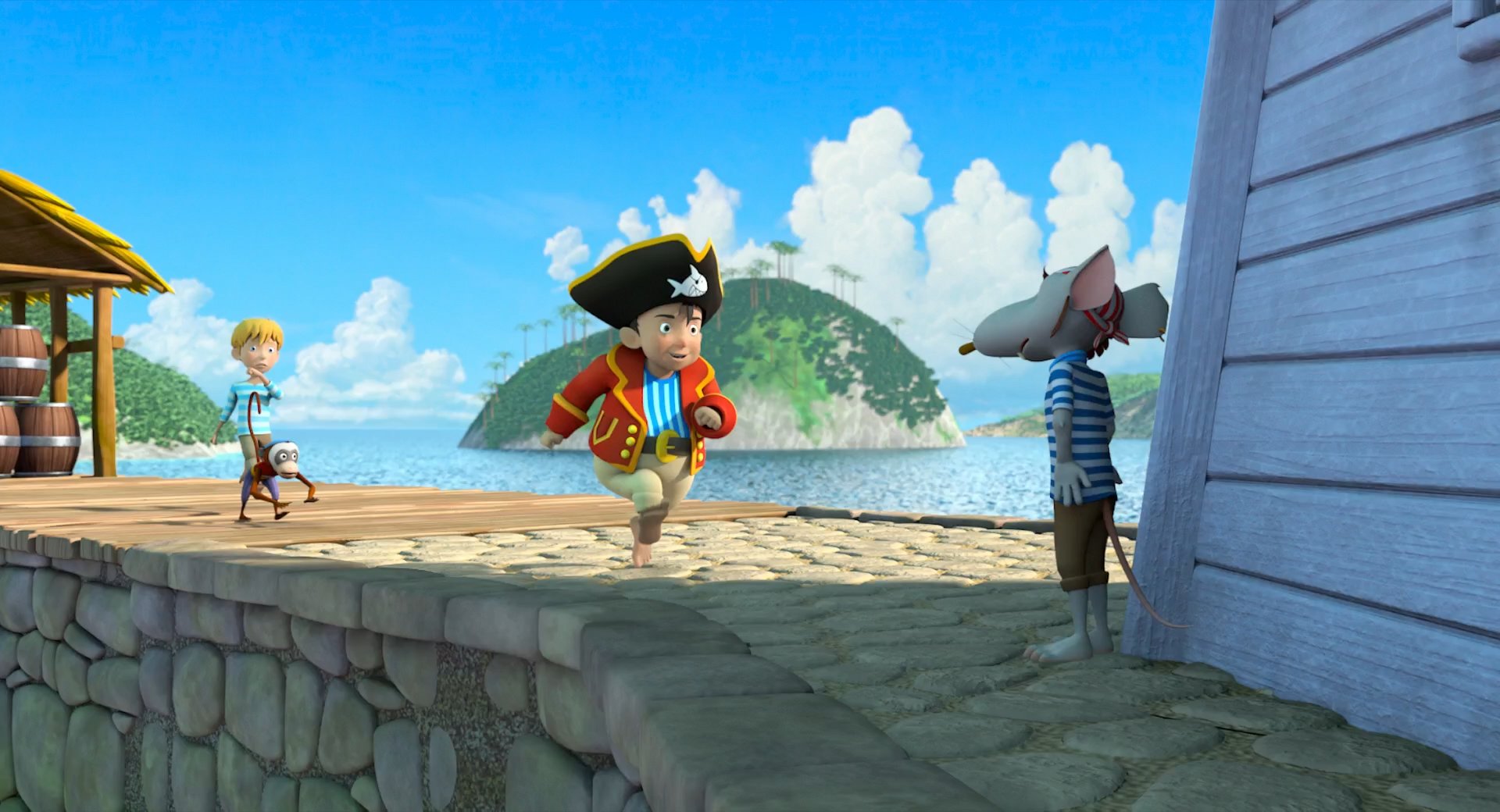 Капитан Шарки может и маленького роста, но он твердо верит, что он самый грозный пират семи морей. Он и его корабль готовы отправиться в свое первое плавание и всё, что нужно Шарки – компас и настоящая команда. На борту судна случайно оказываются сразу два пассажира: примерный и воспитанный мальчик Мики и бойкая девочка Бонни - дочь Адмирала. Вместе эту разношерстную компанию ждут захватывающие приключения!