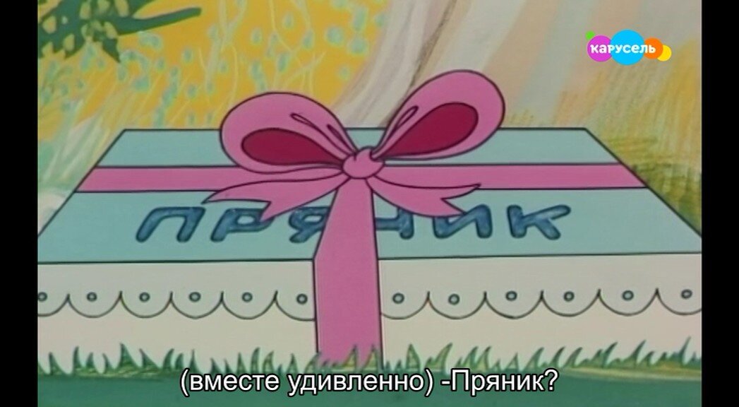Мультипликационный фильм о том, как зайчонок, барсучонок и ужонок нашли в лесу пряник и по совету галчонка решили подарить его кому-нибудь из лесных хищников.