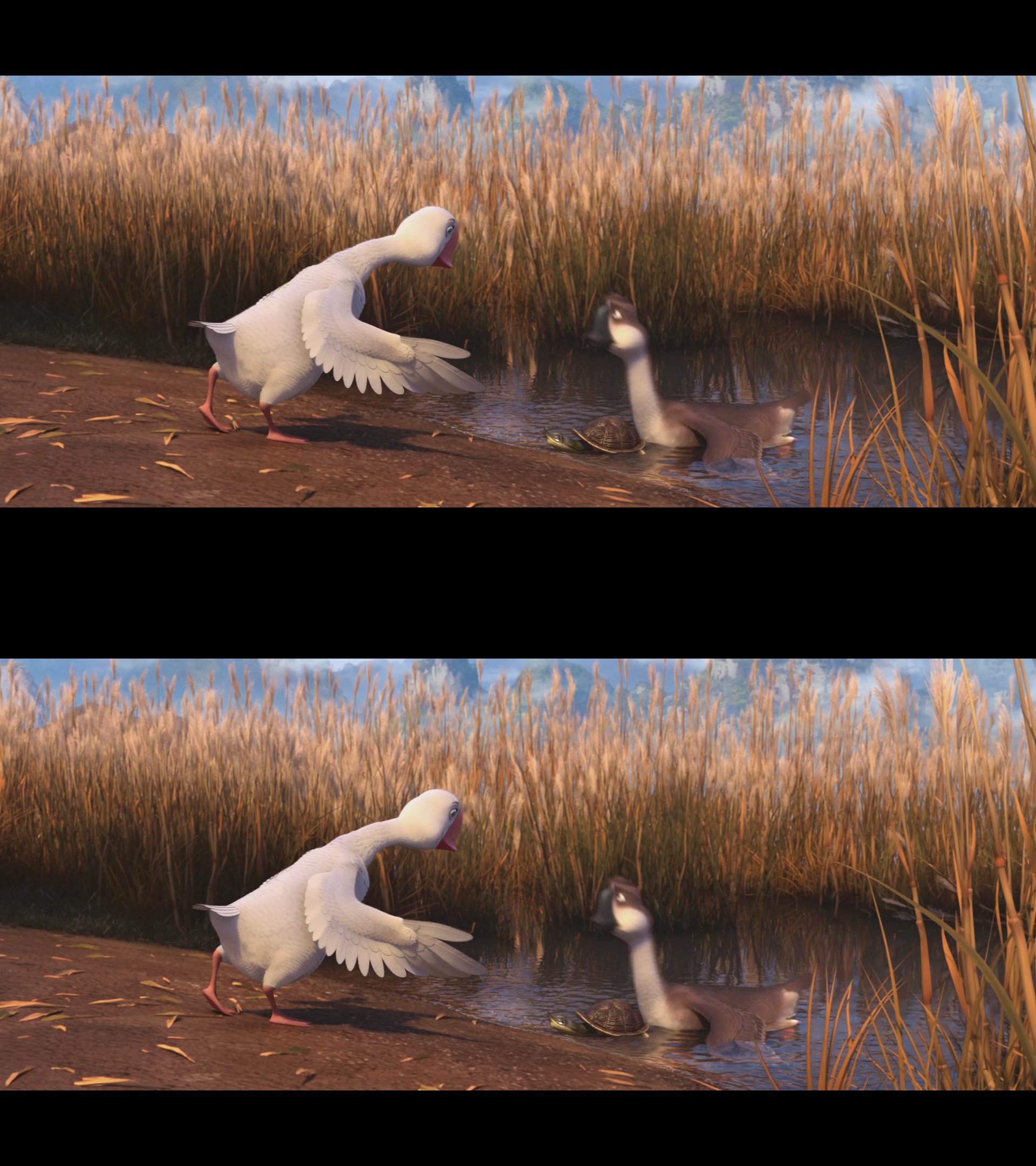 Пэм — веселый и самовлюбленный неудачник, который постоянно попадает в нелепые ситуации и подвергает свою родню опасности. Ему всегда удавалось избежать наказания, но не в этот раз…. Из-за полученной травмы крыла, неудачливый эгоист упал на землю, где не сумел благополучно приземлиться. Рухнув вниз, он чуть было не задавил двух маленьких утят. Несмотря на свой скверный и несерьезный характер, Пэм проявил заботу о малышах. У гуся созрел план — отправиться в дорогу с птенцами пешком. Им предстоит преодолеть множество километров, где их ждет масса приключений и испытаний.